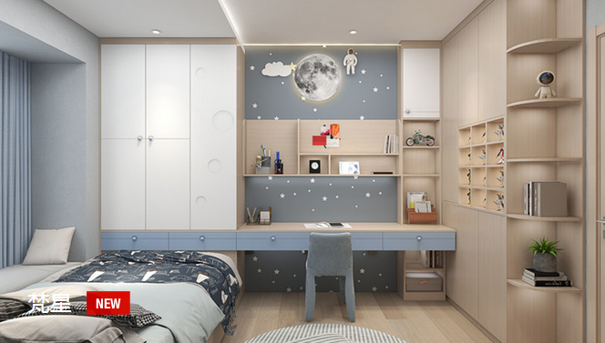可能有一部分業(yè)主,不想讓書(shū)柜與衣柜組合,藏書(shū)也沒(méi)有那么多,針對這一消費群體??梢钥紤]榻榻米與書(shū)柜組合的設計,一般這樣的設計在臥室面積非常小的時(shí)候比較適用。在榻榻米的床頭上方定制柜子,既可以?xún)ξ镆部梢詳[放書(shū)籍,也可以擺放一些擺件用來(lái)裝飾。而榻榻米可以設計成中間可升降的,充當書(shū)桌在合適不過(guò)了,這樣的設計,滿(mǎn)足了一部分消費者的特別需求。