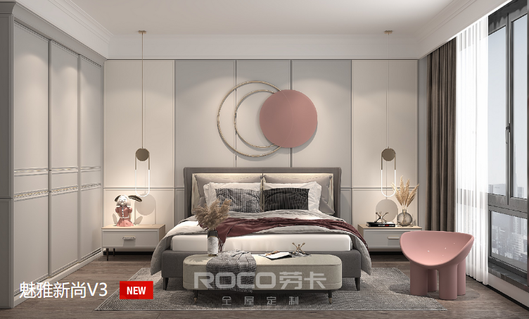 4、實(shí)木定制衣柜還有一大好處,就是節省空間??梢园凑漳愕男枰M(jìn)行設計,裝進(jìn)家中后,形成衣柜凹入墻內的感覺(jué),再通過(guò)衣柜推拉門(mén)色調的選擇,實(shí)現和整個(gè)居室的裝修渾然一體。